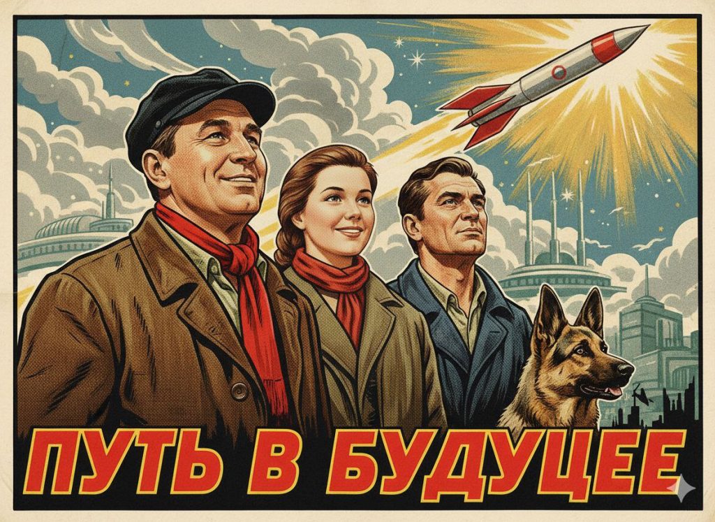 Выиграл Anton i с афишей фильма “Путь в будущее”, с участием Артёма Шишкова, Святослава Викторовича, Лайзы Минелли, соседской собаки породы мухтар и волосатой ракеты.