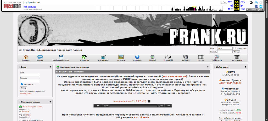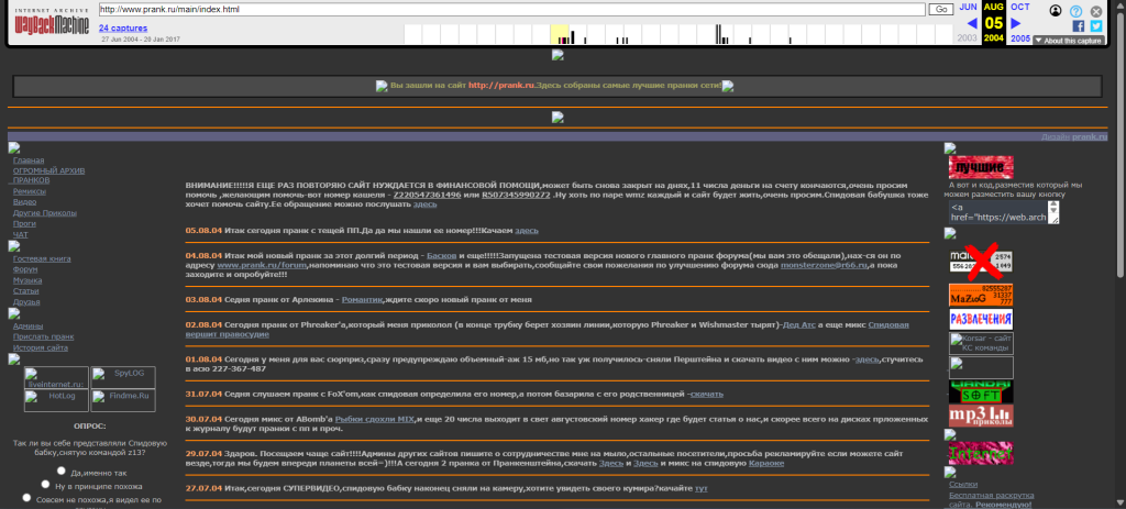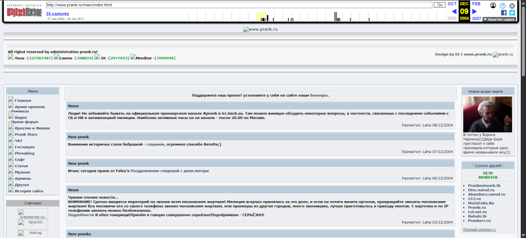 Здесь Вы найдете исчерпывающую информацию обо всех популярных и не очень жертвах пранка прошлых лет, сможете послушать многие записи и посмотреть архивные видео в разделе PrankWiki.